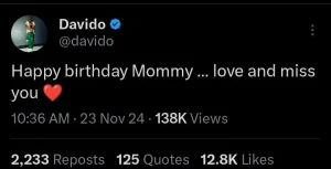 In his heartfelt tweet, Davido expressed his deep emotions, honoring his mother’s legacy and the love that still binds them. The singer has often spoken about how his late mother inspires his music and life choices, making this tribute especially poignant.