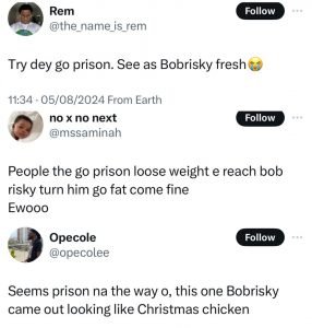 Nigerians are now reacting to his look after his release with many pointing out that Bobrisky who refers to him as ‘’Mummy fo Lagos” looks healthier and fresh for someone who has been in prison.