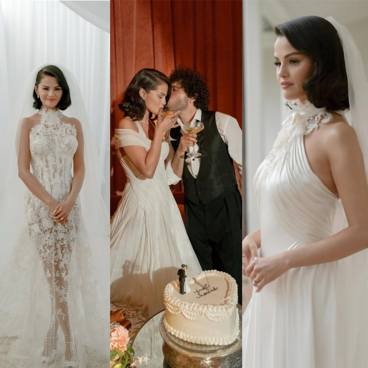 Selena Gomez shares new photos displaying the three wedding dresses she wore at her wedding
