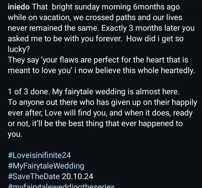 Intrigued, Ebuka approached the bride and asked if she was a housemate, but she remained speechless and continued crying uncontrollably. Ebuka then stunned the audience by revealing the bride was promoting Ini Edo’s upcoming movie, “The Fairy Tale Wedding,” set to premiere on November 20, 2024.