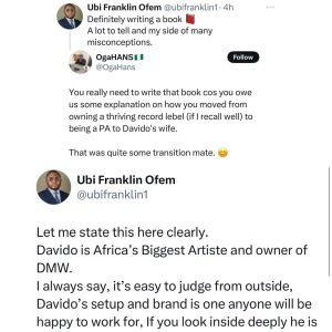Responding to a comment on X, Ubi dismissed the taunts and explained that his responsibilities within Davido’s camp are professional and aligned with his qualifications and experience.