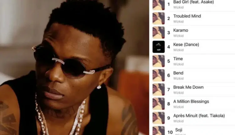 Nigerian music superstar Wizkid has once again asserted his dominance in the global music scene with his latest album, Morayo. The album has swept the charts, occupying an impressive 17 spots on Apple Music’s Top 100 Songs list.